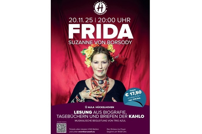 Am Donnerstag, 20. November 2025, lädt die Stadt Hückelhoven zu einem besonderen Kulturabend in die Aula des Gymnasiums Hückelhoven ein. Ab 20:00 Uhr präsentiert die renommierte Schauspielerin Suzanne von Borsody die Autorenlesung „Frida Kahlo“.