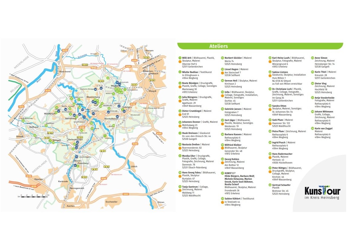 Weitere Infos zu den Kunstschaffenden mit Übersichtskarte sowie einen Flyer (ab ca. Mitte März) finden Sie auf der Website: www.kunsttour.kreis-heinsberg.de